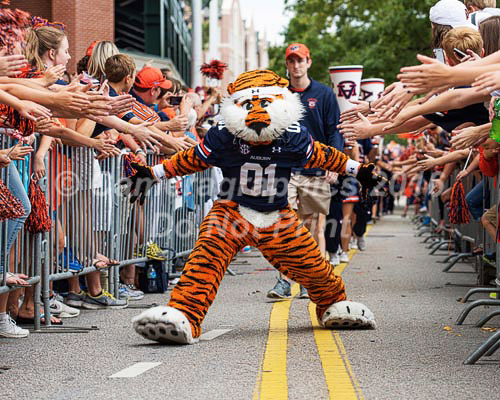 Aubie 'fiving' the crowd at Tiger Walk
