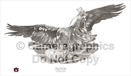 Commemorative Signed limited edition fine art print of Nova, War Eagle VII . by Lee Mapp. Proceeds help fund the Southeastern Raptor Center at Auburn University.