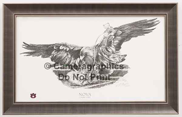 Commemorative Signed limited edition framed fine art print of Nova, War Eagle VII. by Lee Mapp . Proceeds help fund the Southeastern Raptor Center at Auburn University.