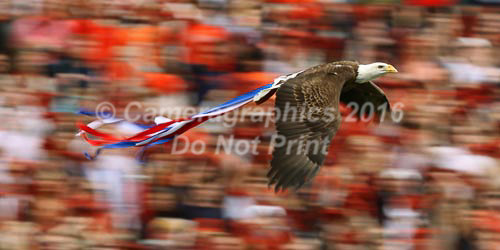 War Eagle, fly down the field! Spirit, soaring around the stadium.