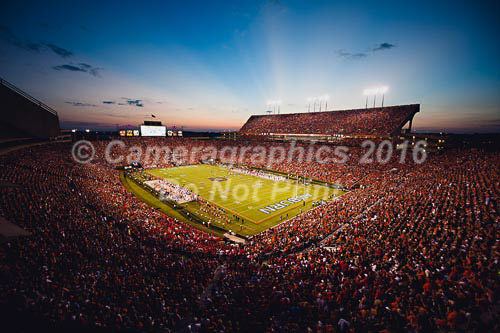 Jordan Hare stadium at sunset